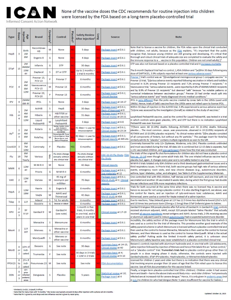 None of the Vaccine Doses the CDC Recommends for Routine Injection into Children Were Licensed by the FDA Based on a Long-Term Placebo-Controlled Trial