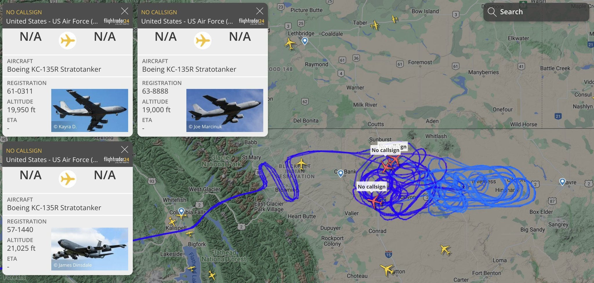Several F-22 and 3 US Air Force Stratotankers1 flew under it.2 By the way, none of the photos show identifying tail codes3, just like chemtrail planes, they don’t even have registration painted signs)4: