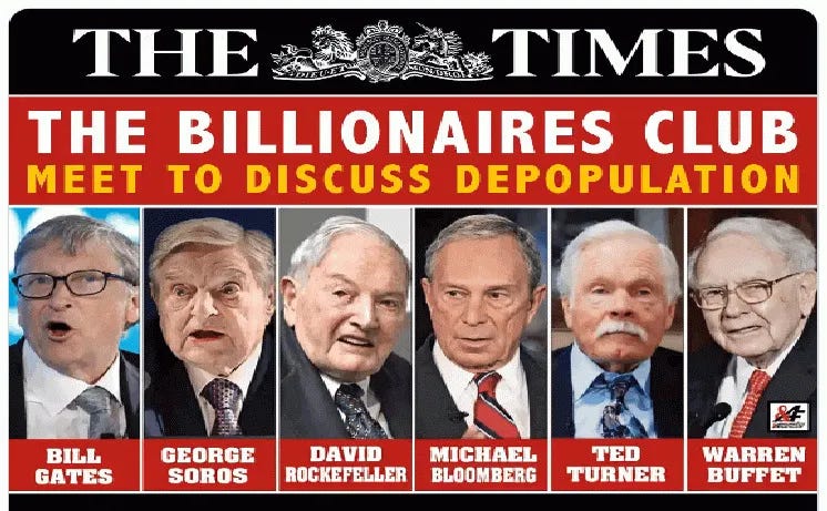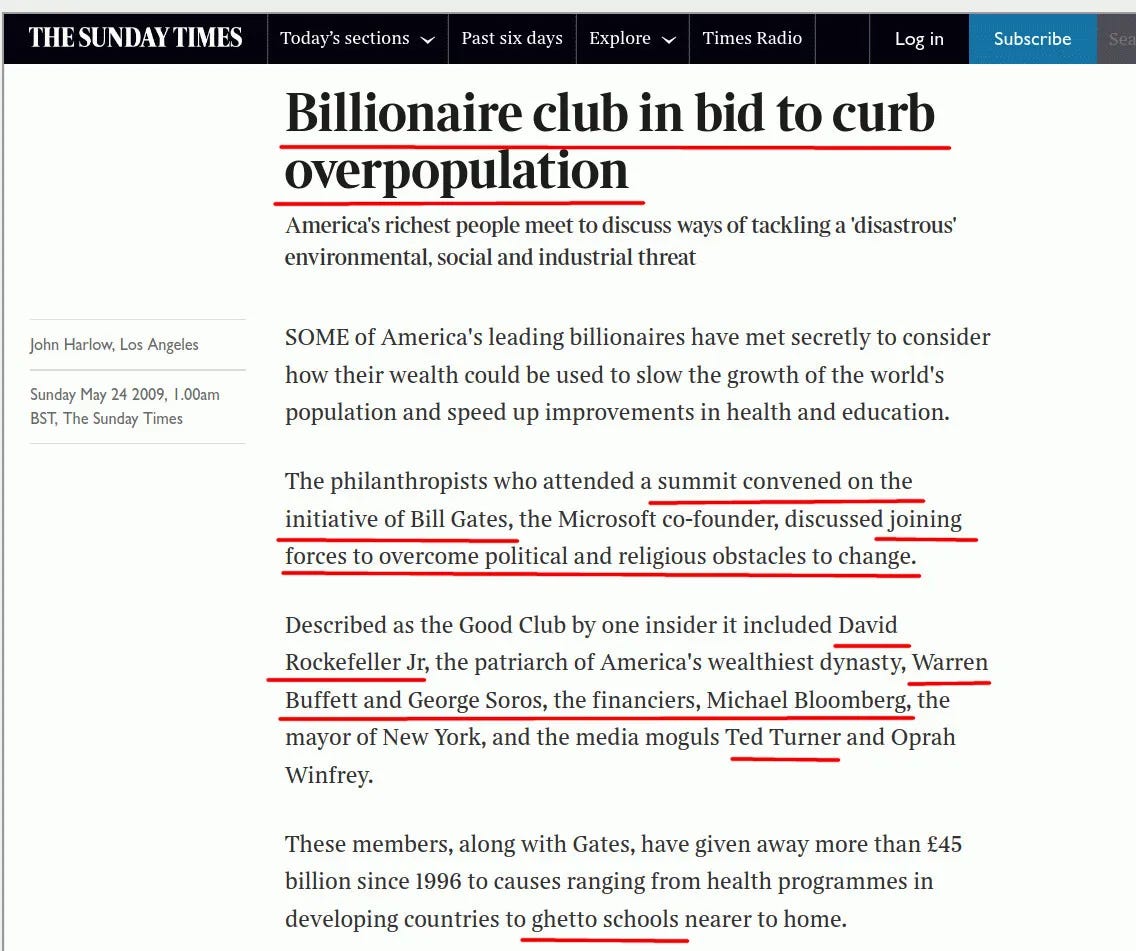 5 May 2009. Freemason David Rockefeller Jr hosted a secretive meeting with masons Gorge Soros, Bill Gates, Warren Buffet, Michael Bloomberg, Ted Turner and Oprah Winfrey, calling themselves “The Good Club”, to discuss depopulation plans. “Why all the secrecy? They wanted to speak rich to rich without worrying anything they said would end up in the newspapers, painting them as an alternative world government.” 23
