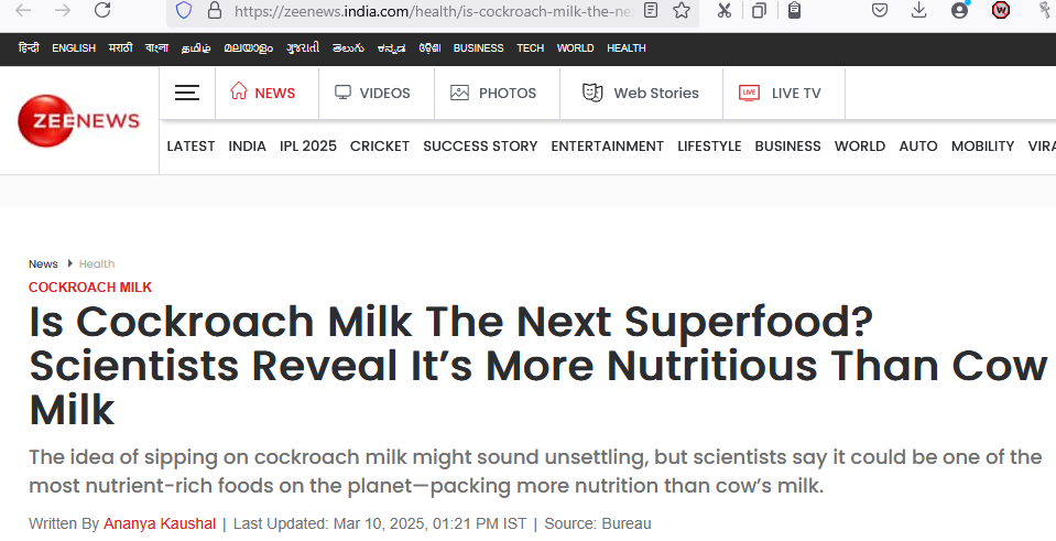 "DRINK zee bugs": Cockroach Milk The Next Superfood !!!