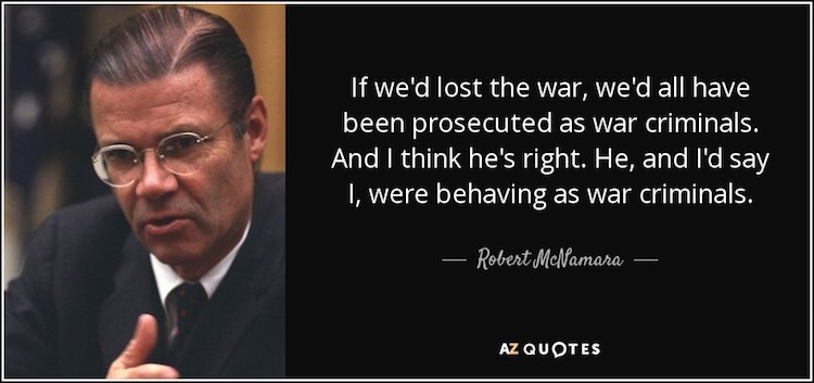 “LeMay said, ‘If we'd lost the war, we'd all have been prosecuted as war criminals.’ And I think he's right. He, and I'd say I, were behaving as war criminals.” 42