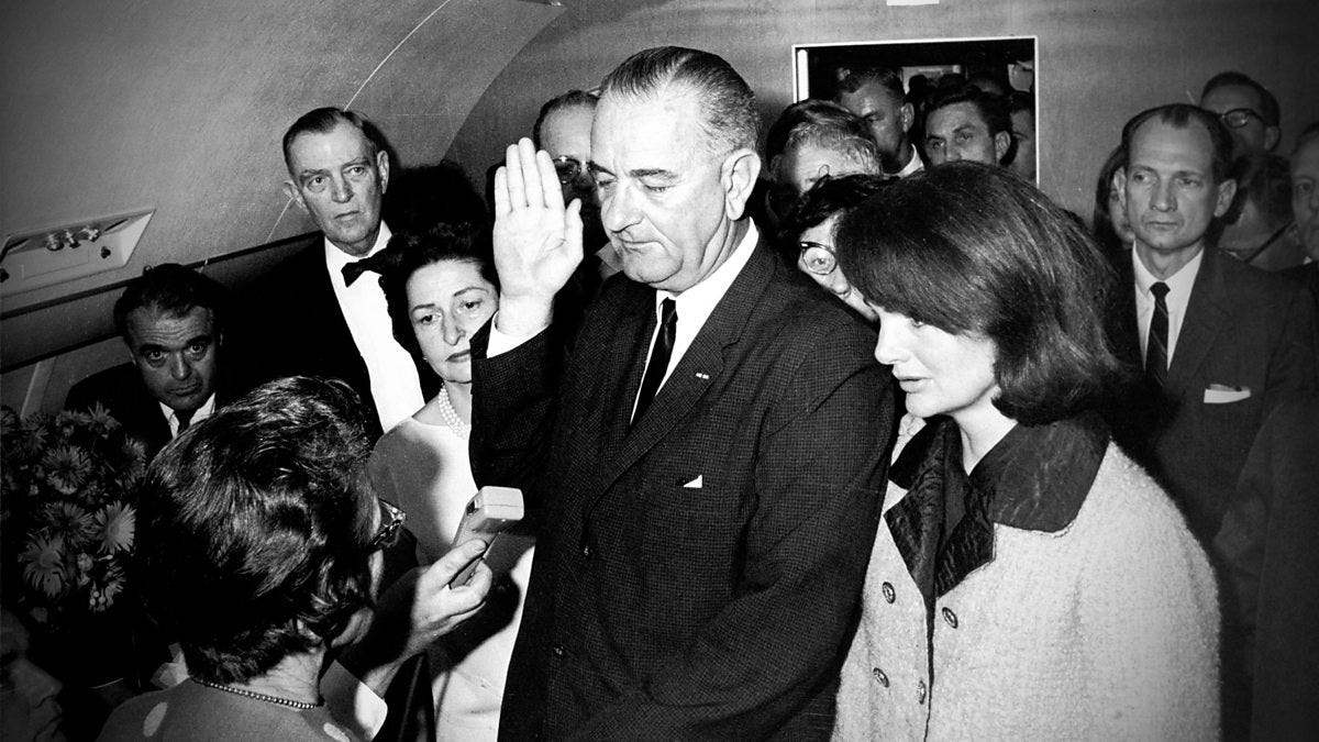 Yeah he sure made sure to document his take over. Too bad Kennedy almost put the federal reserve out to pasture. Now look at the mess Johnson caused. It was not Americas fault. It was the greedy bankers in power back then and now. They are still continuing to pilfer every American still today. That is precisely why we have tent cities in America and crooked politicians running the show. Time to put a stop to them all.