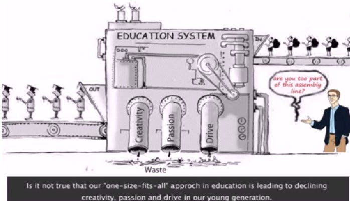 Education was weaponized into a mass production system to turn a nation into a manipulated mass.