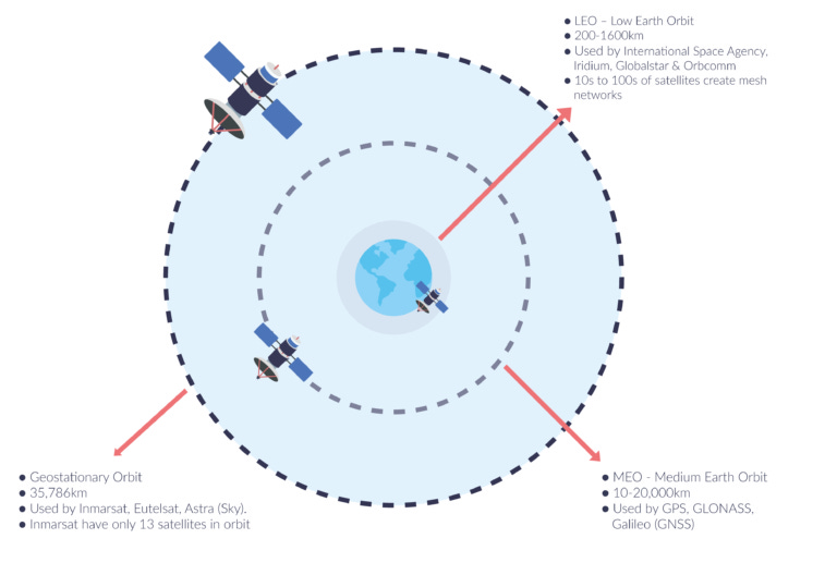 In simple terms, from satellites, they are: