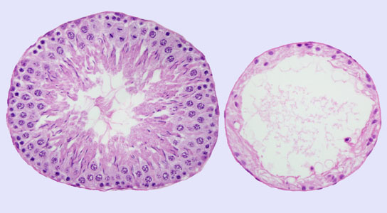 Seminiferous tubules (tubes of the testis) before (left) and after (right) ultrasound