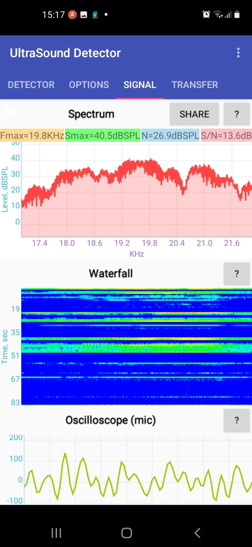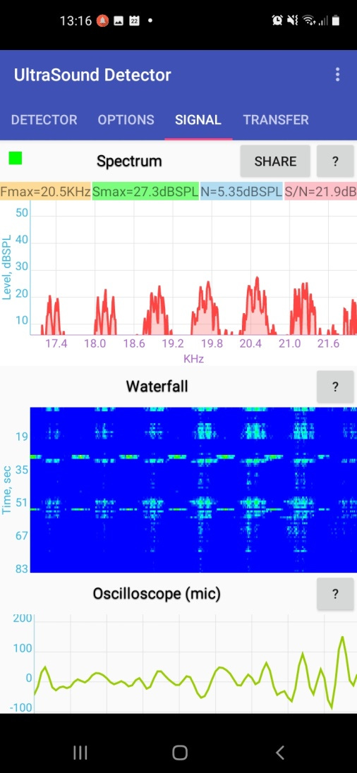 These measurements could be checked with other apps like Spectroid or Ultrasonic detector by DEJ Technology GmbH. If you find similar or different results, please write in comments below.
