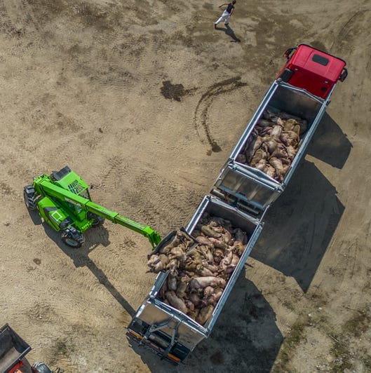 Note: gassed pigs loaded in the truck in order to get dumped.