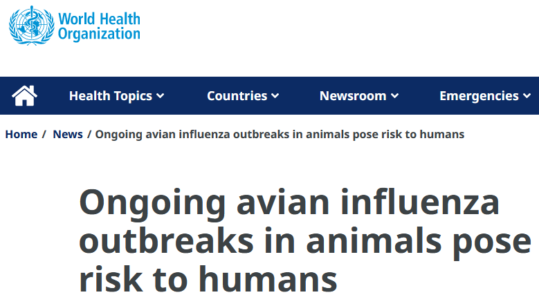 2 https://www.who.int/news/item/12-07-2023-ongoing-avian-influenza-outbreaks-in-animals-pose-risk-to-humans