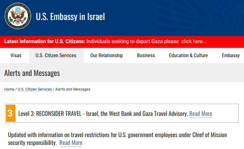 11 Apr 2024. The State Department issued security warnings for U.S. government employees in Israel, restricting them and their families from personal travel outside of the greater Tel Aviv area, Jerusalem and the southern city of Be’er Sheva, better protected by the iron dome: